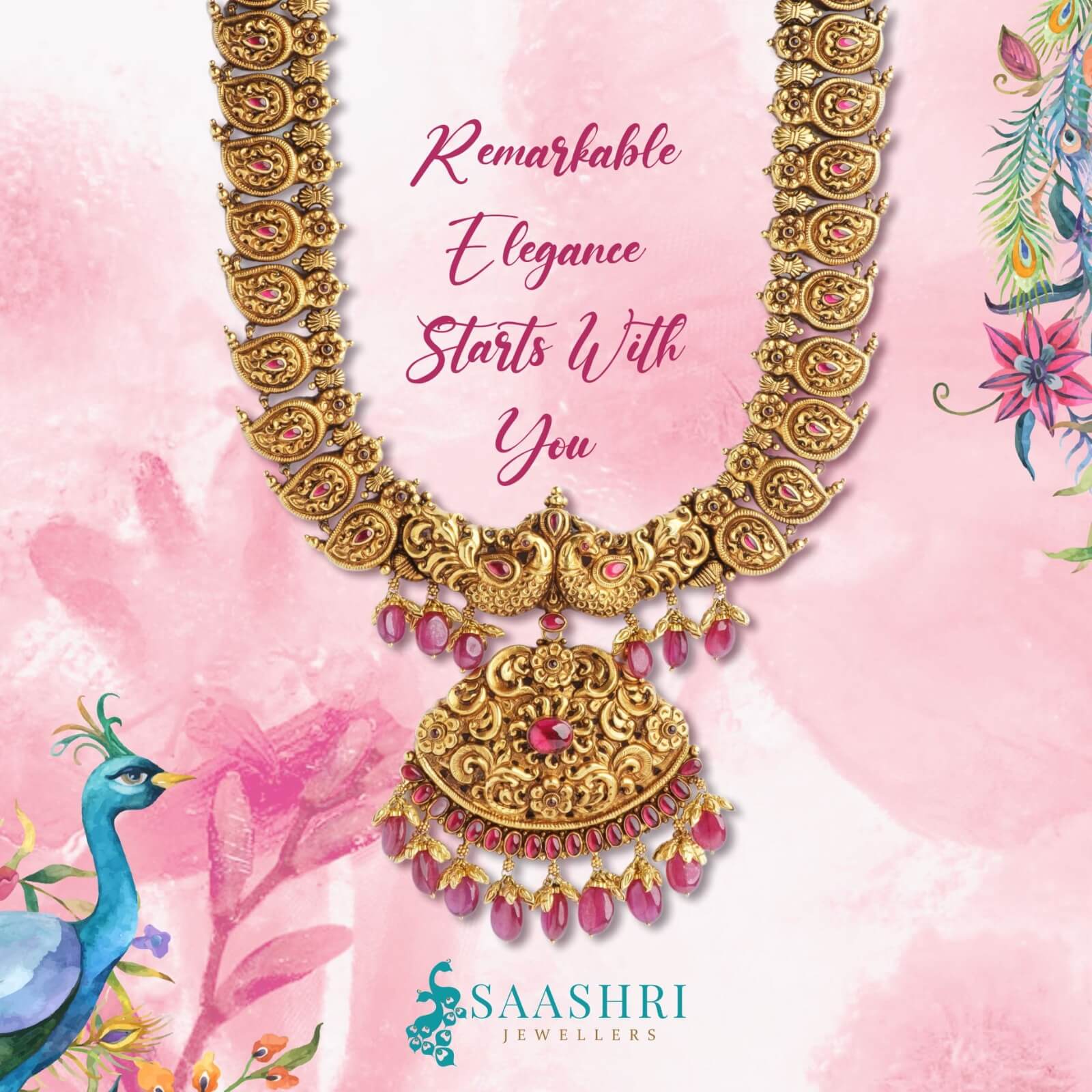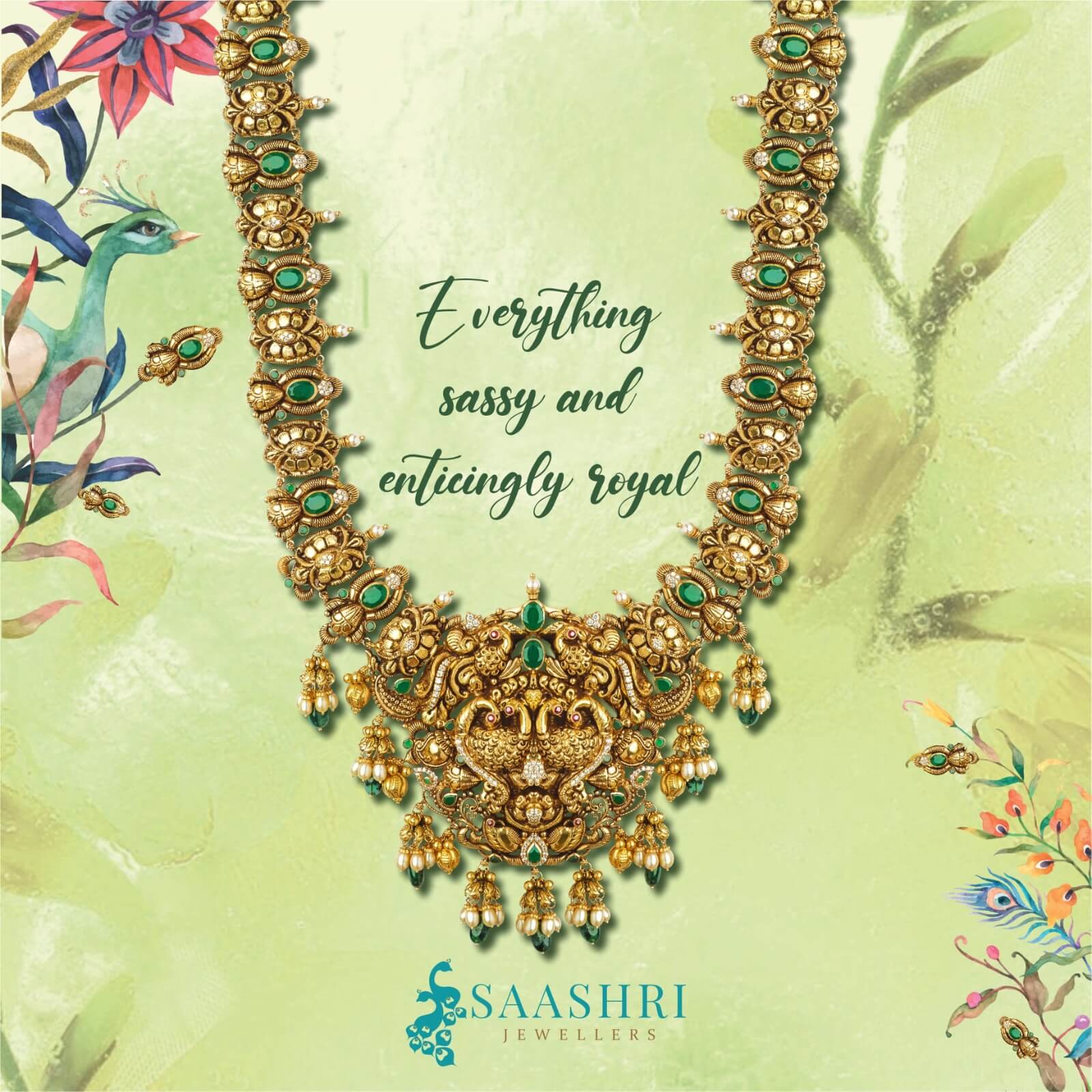 The essence of Saashri Jewellers is its highly diversified, exquisite and intricate jewelry designing that adorns not only the persons appearance but offers a distinctive style statement.